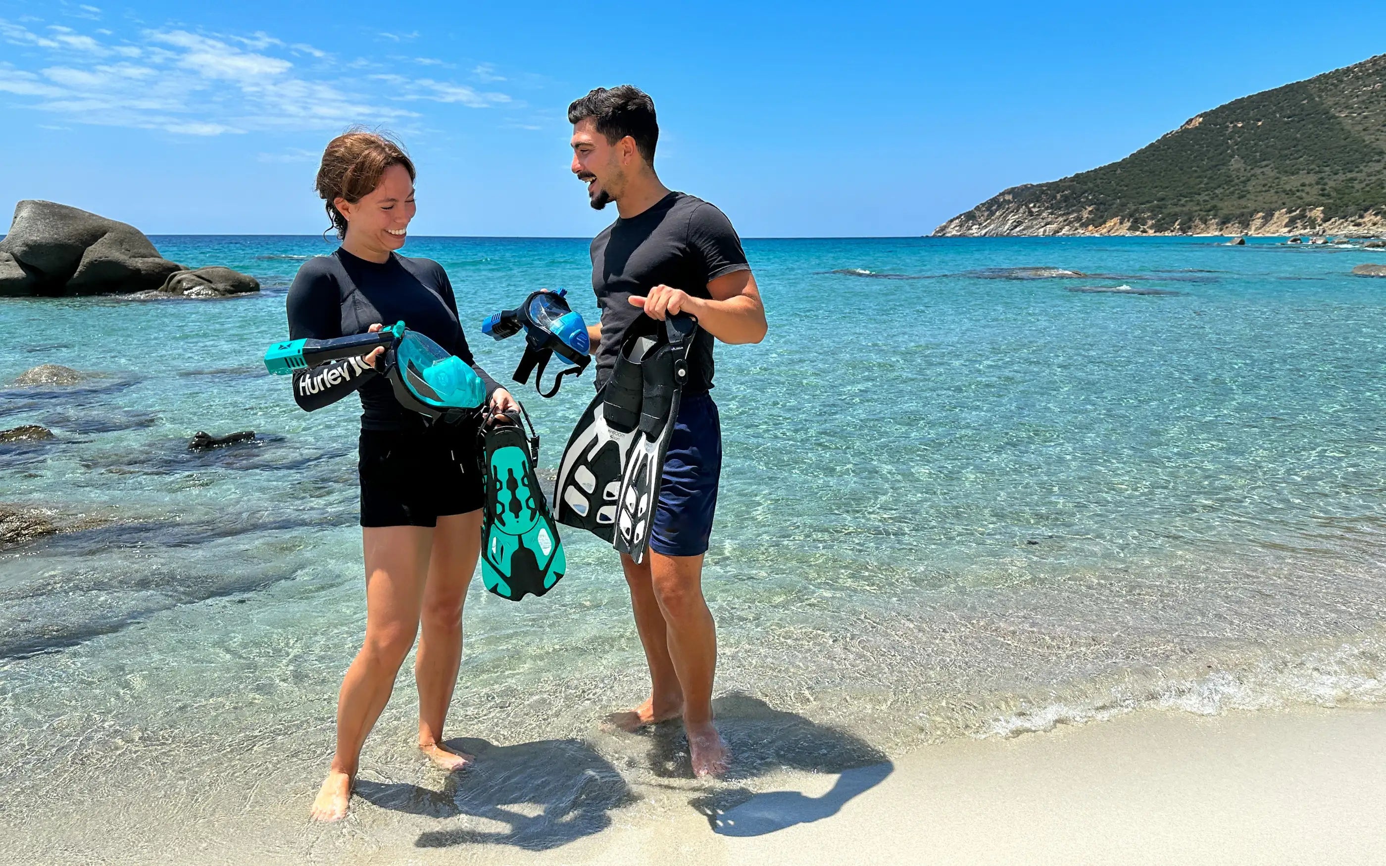 Gestartet haben wir mit der Schnorchelmaske Seaview 180 und Schwimmschuhen mit integrierter Flosse. Das Startkapital hatten wir durch den Verkauf unserer Wohnung.